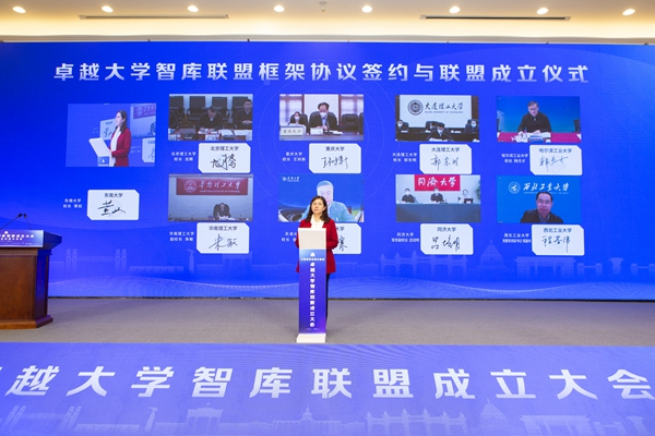 中国科学院院士、东南大学校长黄如和线上参会的各高校领导共同签署卓越大学智库联盟框架协议。校方供图