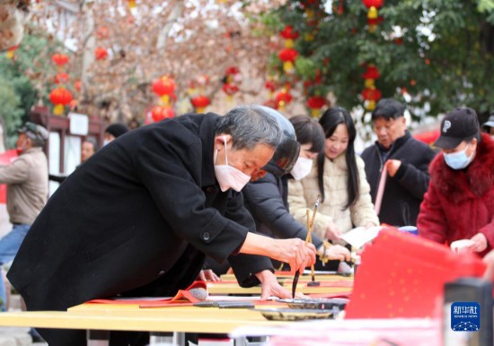 春节临近,多地组织书法志愿者走进社区、工地等场所,为人们书写春联和福字,迎接春节的到来。