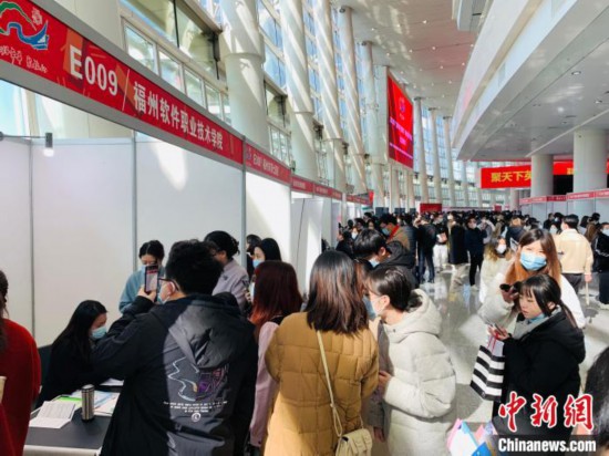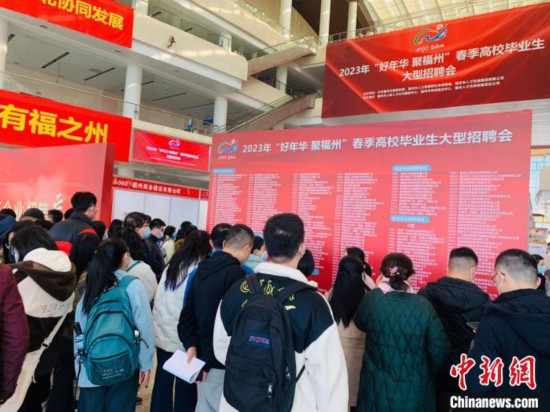 2023年“好年华 聚福州”春季高校毕业生大型招聘会吸引众多毕业生现场求职。 福州市人社局供图