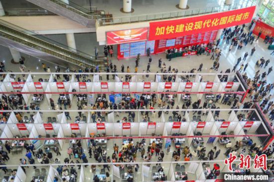 2023年“好年华聚福州”春季高校毕业生大型招聘会现场人山人海。 福州市人社局供图
