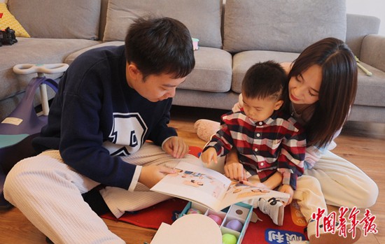 36岁宝妈李晓和丈夫陈逸然在陪伴两岁的儿子。先藕洁/摄