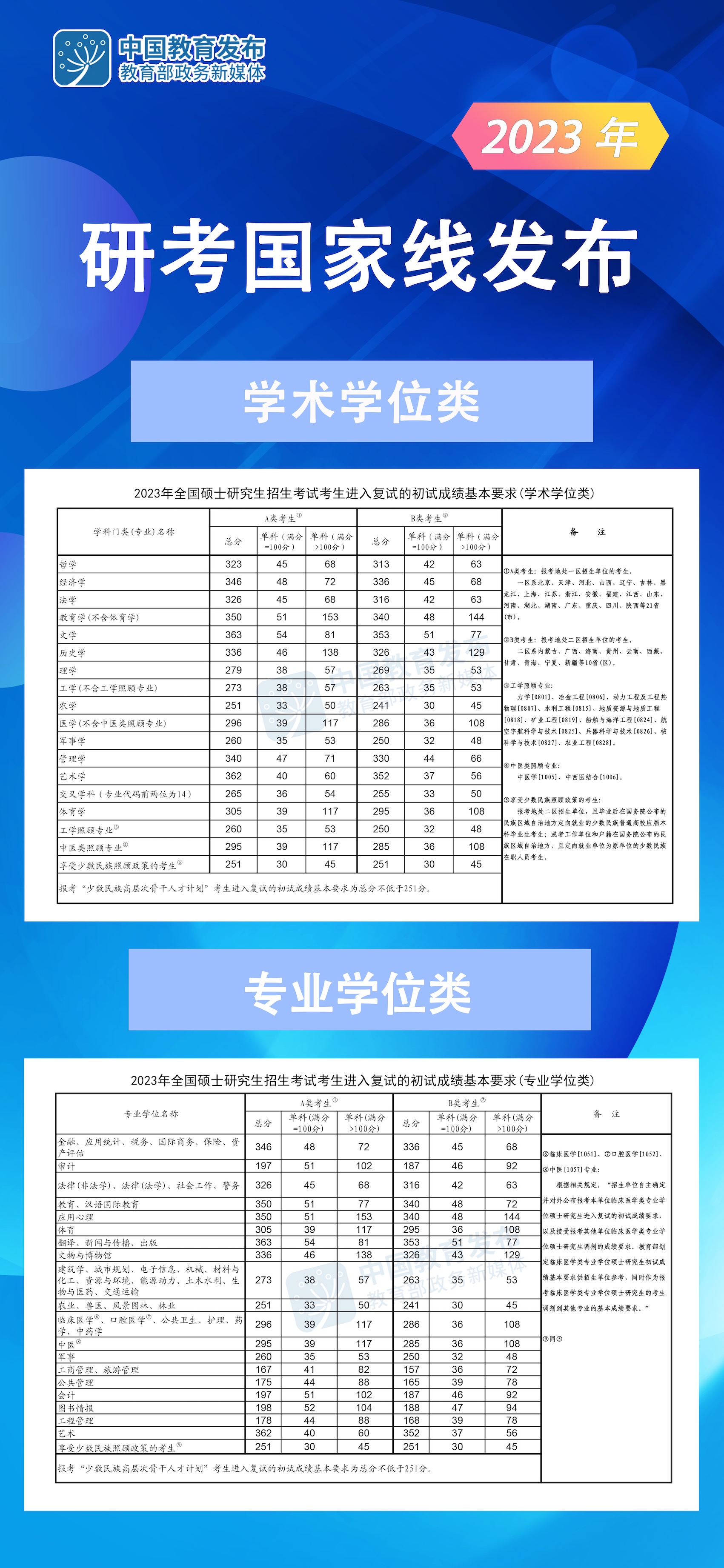 好博体育北京3月10日电 (记者李依环)教育部今天正式发布《2023年全国硕士研究生招生考试考生进入复试的初试成绩基本要求》(国家分数线)。根据《2023年全国硕士研究生招生工作管理规定》,各招生单位将在国家分数线的基础上,自主确定并公布本单位考生进入复试的初试成绩要求及其他学术要求。
