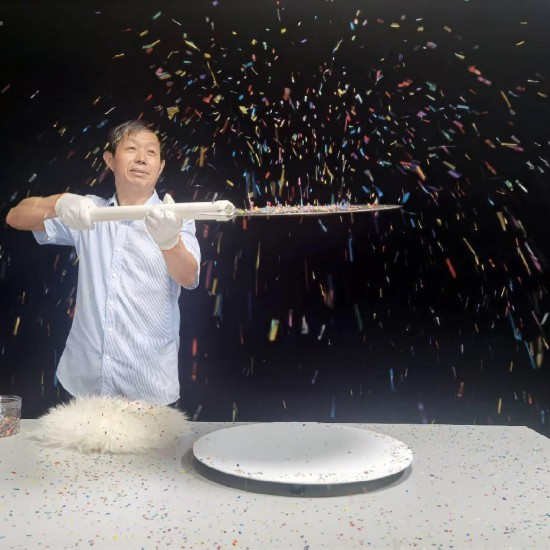 镜头前,62岁的唐守平手举一截塑料管,一束塑料丝在他的“驱赶”下飘浮起来,如同一只挥动触手的章鱼在空中游走。