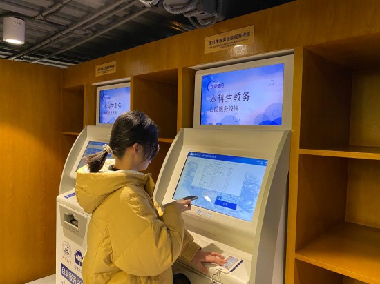 3月21日,华中科技大学学生杨淑慧在师生服务中心打印成绩单。新华社记者李伟 摄