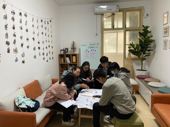 3月21日,华中农业大学荟园学生社区的指导老师帮助学生修改简历。新华社记者李伟 摄
