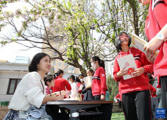当日,北师大实验华夏女子中学举办以“春和”为主题的第二届“海棠诗会”。师生们选取有关“春天”“和煦”“生机”“美好”的诗歌,在校园的海棠树下赏析吟诵,共享诗歌之美,传承中华优秀传统文化。