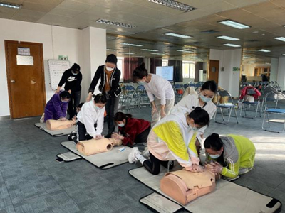 航空企业在实训基地组织实施空乘专业教师培训项目,此为参训教师学习航空应急医疗课程中的急救知识