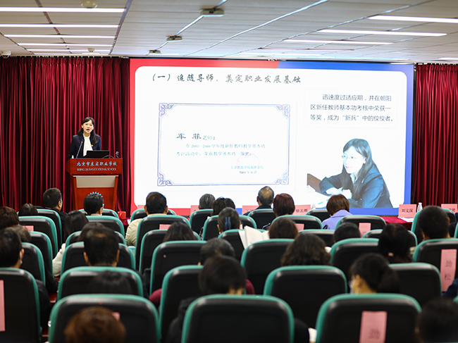 北京市求实职业学校教师车菲正在做报告。校方供图