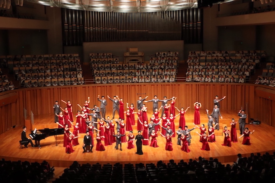 手捧鲜花步入观众席 北京市陈经纶中学金帆合唱团沉浸式开演