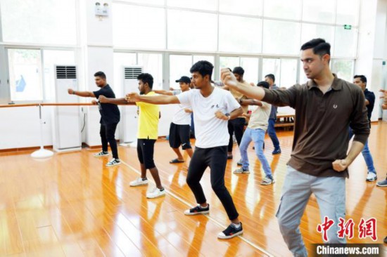 近日,外国留学生在广西南宁学习中国传统的养生功法八段锦。 玉庚鑫 摄
