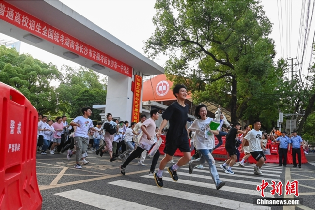6月9日,考生手拉手冲出长沙市一中考点。当日,湖南省2023年高考结束。