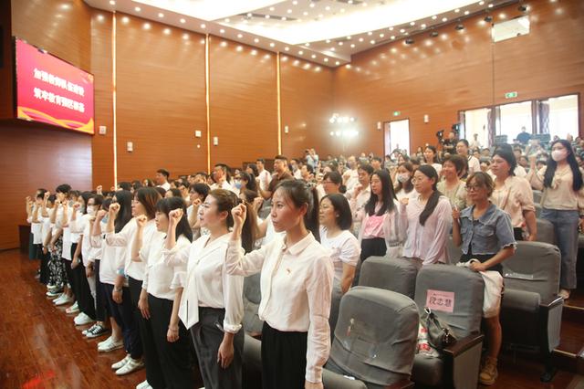 活动中,垂杨柳中心小学60、70、80、90后的所有教师进行了集体宣誓。“躬耕教坛 强国有我”的铮铮誓言将引领朝阳区教师坚定理想信念、陶冶道德情操、涵养扎实学识、勤修仁爱之心,树立“躬耕教坛、强国有我”的志向和抱负。