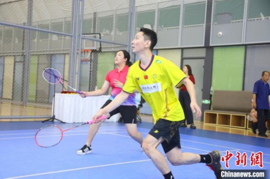 7月16日,台湾高中生庄馥瑄与曾获世界大学生羽毛球锦标赛冠军的大陆选手陈天宇搭档混合双打。(主办方供图)