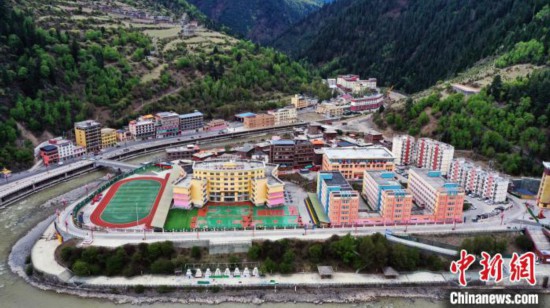 图为四川阿坝州壤塘县寄宿制小学(无人机拍摄)。 中新社记者 安源 摄