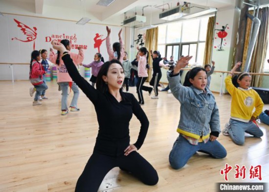 5月18日,四川阿坝州壤塘县寄宿制学校学生参加舞蹈班。 中新社记者 安源 摄