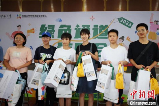 在绿色通道办理入学的学生获赠入校大礼包。泱波 摄