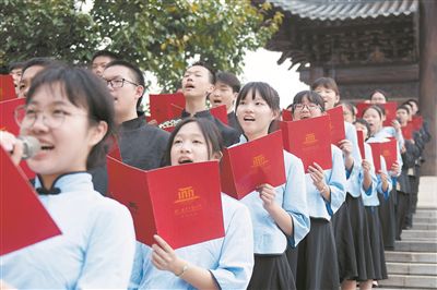 图为9月4日,湖北省武昌实验中学学生在诵读《惟楚有材赋》。新华社发(杜子璇摄)