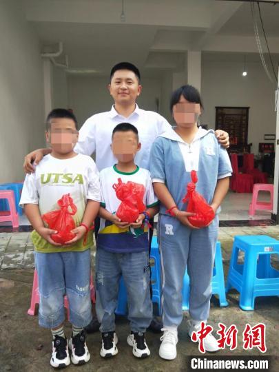 谌华与他救起的3名少年。湖南铁路科技职院 供图