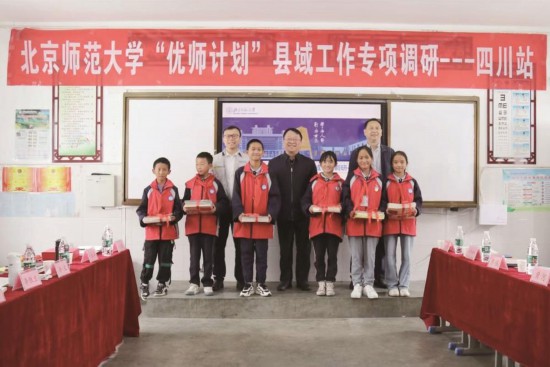 2023年6月,程建平带队前往四川省凉山彝族自治州开展“优师计划”县域工作专项调研,期间与木里藏族自治县倮波乡小学师生交流。