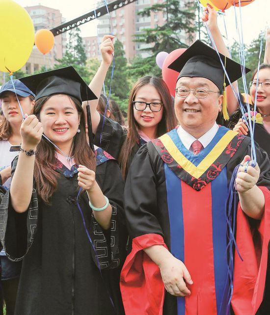 全国政协委员、北京师范大学党委书记程建平与毕业生们在一起。