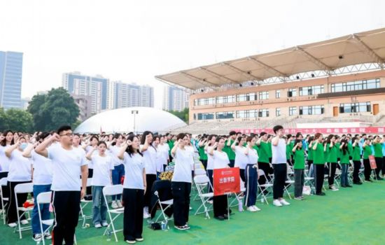 2023级全体新生在学生党团员先锋代表的带领下,面向国旗、校旗庄严宣誓,传承弘扬印刷文明,创新发展出版文化,争做出版传媒时代新人,为建设中国特色国际知名出版大学而努力奋斗!