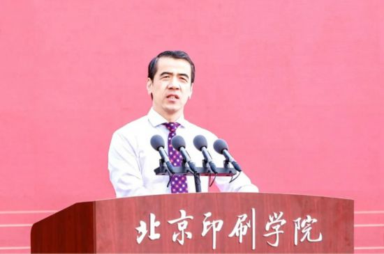 学校1996届印刷技术专业毕业生,中国印刷科学技术研究院院长、国际标准化组织ISO/TC130主席、国家制造强国战略咨询专家委员会委员赵鹏飞代表校友发言。他结合自己在北印的求学经历和出版印刷领域的工作感悟,勉励同学们要传承北印人为出版印刷发展、为国家社会进步贡献价值、输出能量、担负使命的优良传统,提高学习能力,培养兴趣爱好,思考职业生涯,提升个人修养,用坚韧和智慧去开创未来,创造属于出版印刷人的精彩故事。