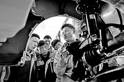 9月8日,在青海省果洛藏族自治州职业技术学校,汽车运用与维修专业学生在实训课程上学习。 新华社发