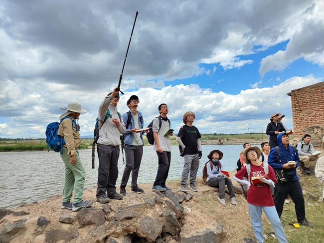 大同思政实践团成员在桑干河岸观察地质地貌。