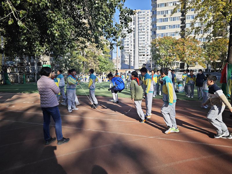 为了引导孩子们课间走出教室,北医附小根据季节设计大型集体项目,比如秋季开展的跳长绳,老师们也参与进来摇绳,带动更多孩子参加体育锻炼。“让学生在课间得到充分休息、活动,才能保证学生的课堂状态,从而促进课堂教育教学质量提升。”田国英表示。