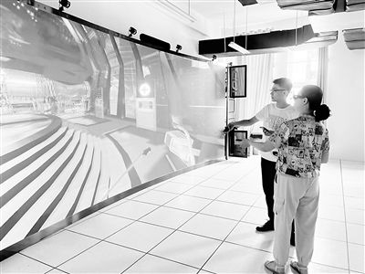 潍坊职业学院信息工程学院教师正在进行元宇宙虚拟展厅测试。记者 王延斌摄