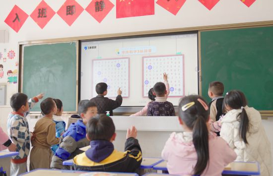2023年12月20日,在云南省昭通市鲁甸县卯家湾小学,学生们通过智能双师课堂,进行《注意力专项训练》课程的大屏互动。通讯员 郑敬亭 摄