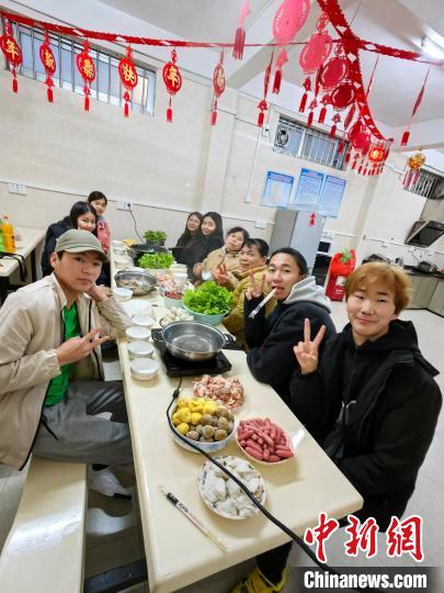 岭南师范学院来华留学生在吃“年夜饭”。张一弛 摄