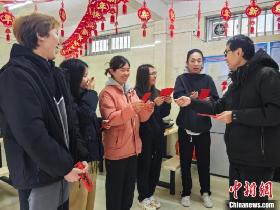 岭南师范学院来华留学生领到过年”红包”。张一弛 摄