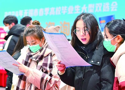 2月22日,2024年江苏省无锡市春季高校毕业生大型双选会在无锡体育中心举办,300多家用人单位到场参会,吸引众多毕业生前来参加。图为求职者在双选会现场了解招聘信息。