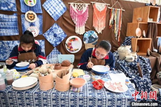 内蒙古呼和浩特市,平面设计专业学生手绘纹样。中新网记者 刘文华 摄