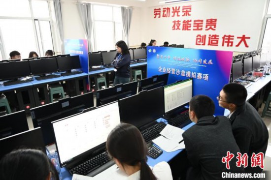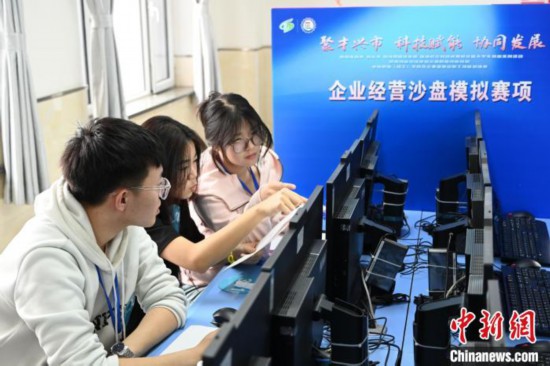 内蒙古呼和浩特市,学生参加企业经营沙盘模拟比赛。中新网记者 刘文华 摄