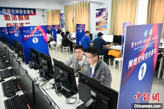 内蒙古呼和浩特市,学生和教职工参加网络空间安全比赛。中新网记者 刘文华 摄