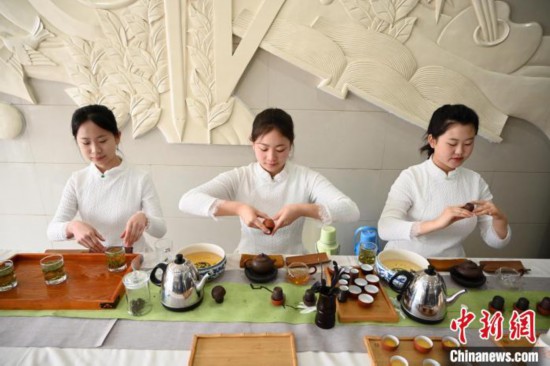 内蒙古呼和浩特市,高星级饭店运营管理专业学生展示茶艺。中新网记者 刘文华 摄