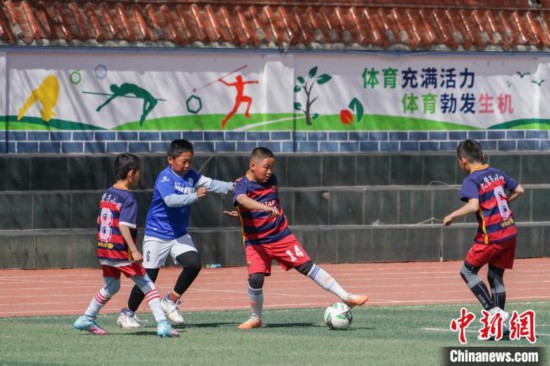 图为在西宁市大堡子小学,学生进行日常足球训练。马铭言 摄