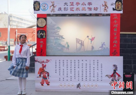 图为在西宁市大堡子小学,学生表演“蹴鞠”皮影戏。马铭言 摄