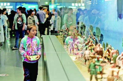 “五一”期间,各地博物馆游人如织,“博物馆热”持续升温。图为5月3日,小朋友在江苏南京城墙博物馆内参观。新华社发