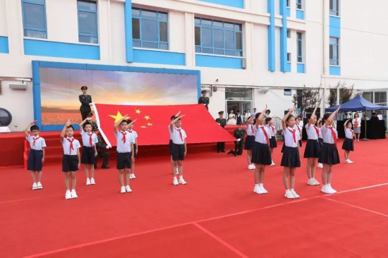 开学典礼 上地实验小学迎来一面特殊的国旗