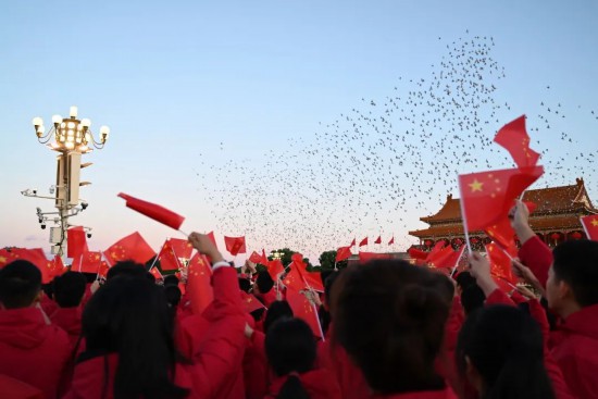 在这个历史性的时刻,能够站在天安门广场上为新中国庆祝生日,我感到无比的自豪和激动。随着国旗缓缓升起,雄壮的国歌激荡人心,我感到无比振奋。踏上新征程,我们青年学子必将在为中国式现代化挺膺担当中展现青春作为、彰显青春风采、贡献青春力量。