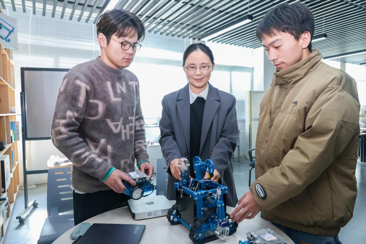 “鸿蒙”班学生置身“实景式”设备开发课堂,在教师指导下调试设备。南京信息职业技术学院供图