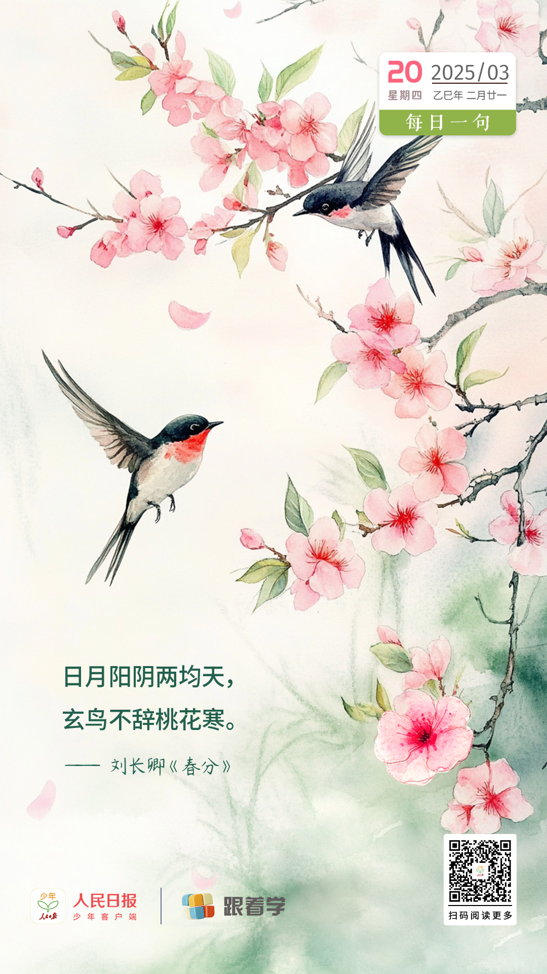 每日一句丨日月阳阴两均天,玄鸟不辞桃花寒