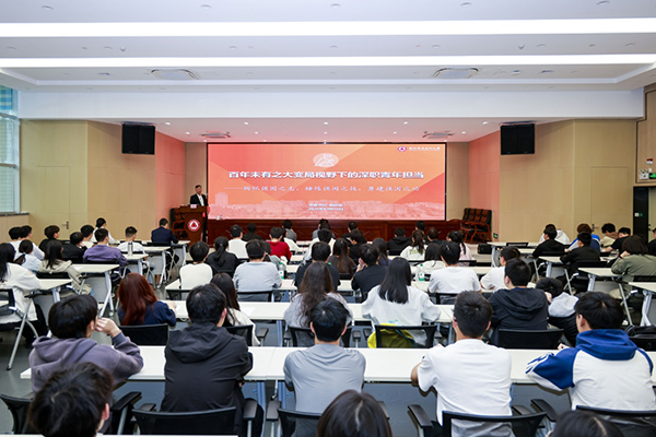杨欣斌以“百年未有之大变局视野下的深职青年担当”为主题,为电信学院2024级学生授课。他举例讲到,面对复杂的国内外局势,中国以“九个一”,即通过“一碗米”“一滴水”“一度电”“一颗菜”“一张票”“一片绿”“一片蓝”“一座桥”“一个梦”,交出亮眼的发展成绩单。他还围绕“青年何为”如何破题,提出应“变”之策,鼓励同学们坚定理想信念、磨炼专业技能、掌握先进方法、坚持创新驱动、下沉社会实践、展现高尚人格,保持全面可持续发展。