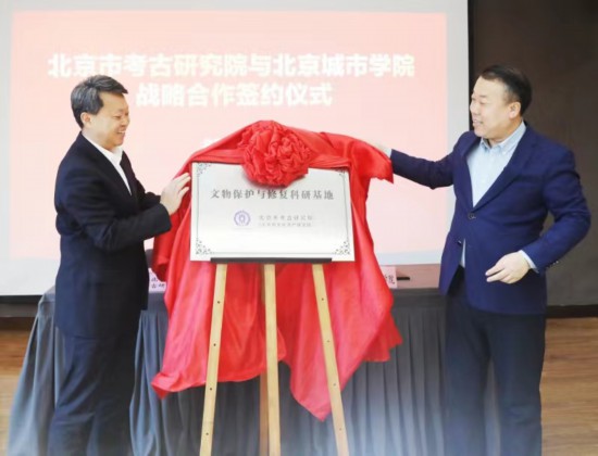 2024年1月,时任北京市文物局局长陈名杰和北京城市学院校长刘林共同为文物保护与修复科研基地揭牌