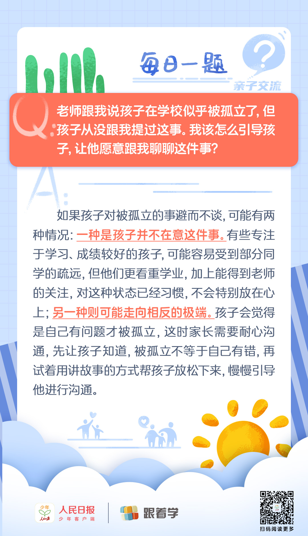 每日一题丨孩子在学校被孤立,我该怎么和孩子沟通?